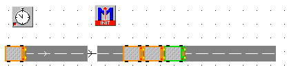 Eine Zugmaschine holt sich ein paar Wagen ab.