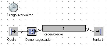 Das Beispiel zeigt die Verwendung der Demontagestation zur Modellierung von Trenn-Operationen (z.B. Sägen, Abstechen...)
