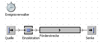 Dieses Beispiel zeigt, wie man mit Hilfe der Systemzeit die Simulationsdauer ermittelt (siehe Beobachter im Ereignisverwalter).