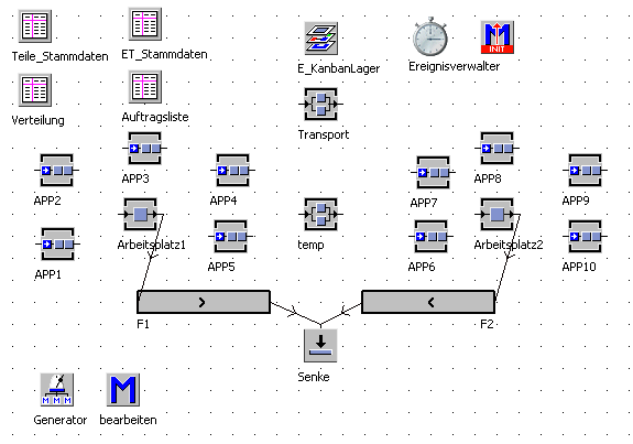 Simulation eines einstufigen (E-)Kanban-Systems.
