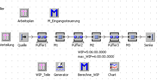 Simulation einer CONWIP-Steuerung auf der Basis von Bearbeitungszeiten (Kapazitätsverbrauch)