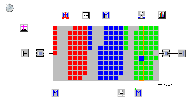 This example shows how to change the store-strategy of the StorageCrane and how to create stock-statistics (keywords: crane, store)