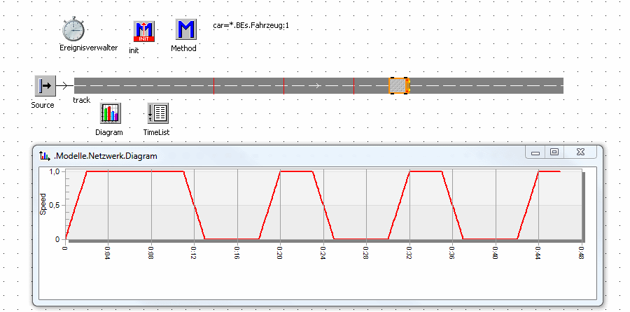 use acceleration and deceleration for the transporter; decelerate until the speed is zero, wait 5 seconds, accelerate to the former speed