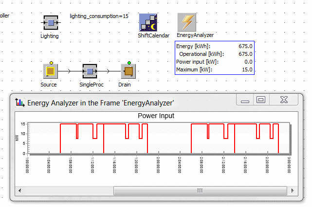 simulate the energy consumption of e.g. lighting, look in the observer of the ShiftCalendar