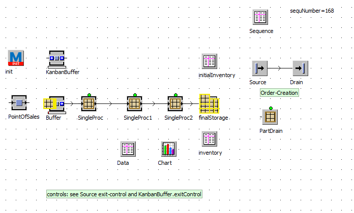 this is a training example; how to program a KANBAN control with KANBAN-cards; how to control the WIP using the number of KANBAN cards