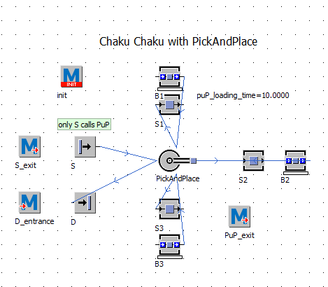this example shows one version of how to deal with chaku chaku operated by a PickAndPlace robot