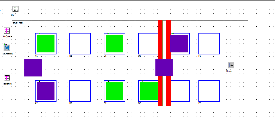 a portal crane transports parts depend on a work plan (table BoP); see for programming entrance and exit controls of the stations and methods in the portal track