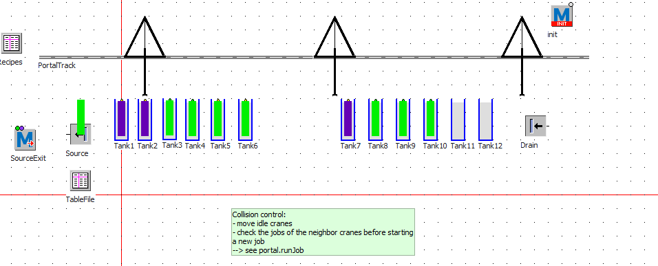 Collision control: - move idle cranes - check the jobs of the neighbor cranes before starting a new job --> see portal.runJob