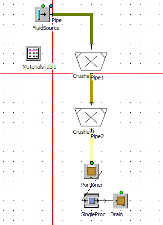 how to model a crusher using the fluids library, based on a fluid source and a fluid drain