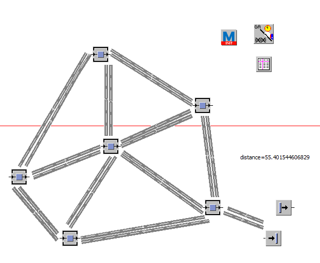use the GA (genetic algorithm)for optimize the routing of a transporter; the GA changes the routing list and try to find the shortest way, you need to delete and add the drain dynamically (see init and entrance control of the drain)