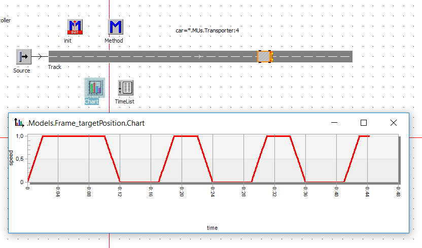 shows different possibilities to stop a transporter and the behavior of the transporters with speed-time-diagrams