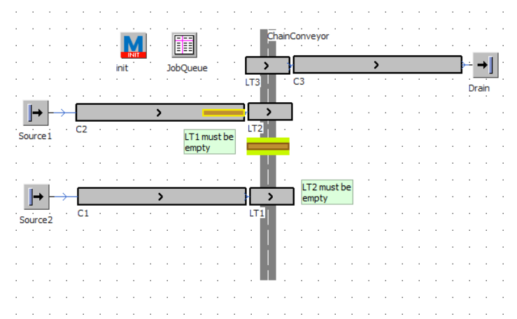 how to model a chain conveyor using dynamically created and deleted transporters on a track