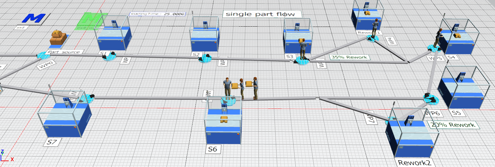 the worker processes one part from the start until the end of the process; variant using transporter instead of workers